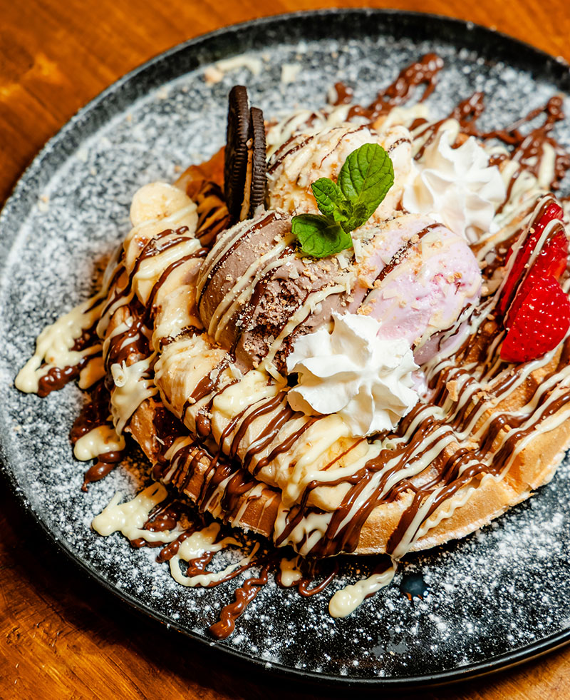 Our chocolate waffle is a delicious dessert, boasting a crispy, golden-brown exterior and a soft, fluffy interior infused with rich chocolate flavour